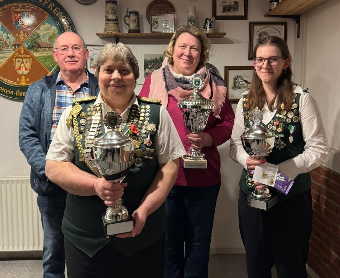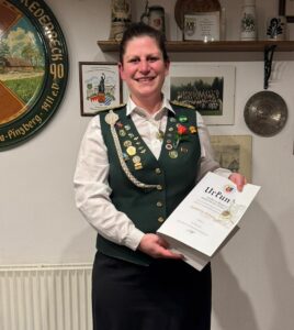 Auszeichnungen und Ehrungen: Die Damenleiterin Annegret Alpers konnte eine Vielzahl von Schützinnen und Schützen für herausragende sportliche Erfolge ehren. Im weiteren Verlauf nahm Schulze Ehrungen für 25-, 40-, 50- und 60-jährige Mitgliedschaft vor. Eine besondere Würdigung ging an Katharina Schulze, die für ihren jahrelangen Einsatz die Goldene Bezirksehrennadel mit Lorbeer erhielt.